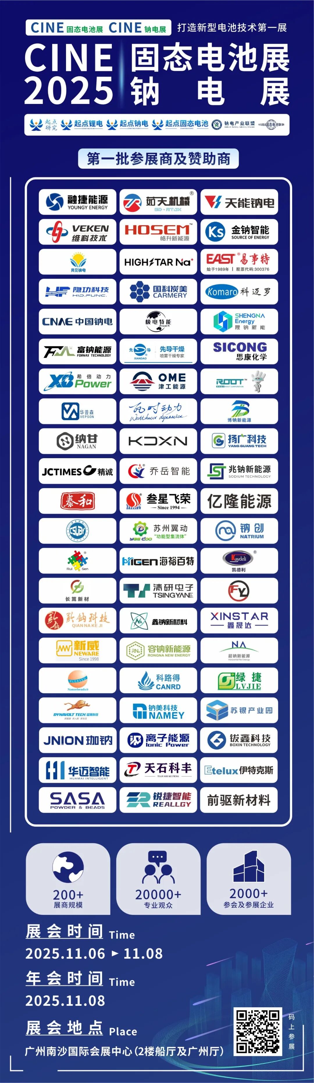 金钠科技/天能钠电/皓升新能源/科迈罗/茹天科技/亮见钠电/维科技术/海四达钠星/易事特钠电/泰和科技/隐功科技/国科炭美/晟钠新能/中钠能源/乔岳智能/津工能源/科达新能源/时代思康/富钠能源/极电特能/华普森/叁星飞荣/纳甘新能源/扬广科技/银川苏银产业园/兆钠新能源/精诚时代/儒特股份/希倍动力/先导干燥/瓦时动力/博粤新材料/苏州翼动新能/亿隆能源/钠创新能源/凯德利/长篙新材/孚悦科技/珈钠能源/鑫钠新材料/同兴科技/黔钠科技/鑫晟达/新威/容钠新能源/科路得新能源/华迈智能/猛狮新能源/绿捷环境/钠美科技/柏励司/派能科技/英钠新能源/为方能源/盛安精瓷/中科固能 /融捷能源/浙江锋锂/国联动力/瑞森新材料/海裕百特/天石科丰/有研广东院/博粤新材/研一新材料/巴斯夫杉杉/清研电子/先导智能/清华大学深圳院/中科院合肥物质科学研究院/巴中经开区/佰思格/厦门前驱新材料/艾迈斯/钹鑫科技等